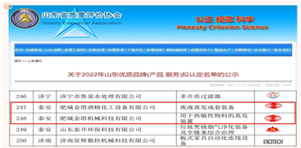 榮耀閃閃,品牌彰顯。 近日,2022年山東省優(yōu)質(zhì)品牌榜單揭曉。山東金塔機(jī)械集團(tuán)“廢液蒸發(fā)成套裝備”、“用于熱敏性物料的蒸發(fā)裝置”榮耀上榜。至此,自2019年榜單發(fā)布以來,金塔集團(tuán)共有10項(xiàng)產(chǎn)品榮獲山東優(yōu)質(zhì)品牌稱號(hào)。 山東金塔集團(tuán)守正創(chuàng)新強(qiáng)主業(yè),精耕細(xì)作鑄品牌,突出以科技創(chuàng)新強(qiáng)化品牌支撐,年年出成果,歲歲有專利,新工藝、新技術(shù)、新產(chǎn)品拓寬了市場新領(lǐng)域。作為《酒精蒸餾塔》、《糠醛水解鍋》、《糠醛蒸餾塔》等20余項(xiàng)國家行業(yè)標(biāo)準(zhǔn)的制定者,金塔集團(tuán)聚焦雙碳目標(biāo),把控綠色節(jié)能方向,牢牢占據(jù)行業(yè)制高點(diǎn),贏得了市場話語權(quán)。通過深入實(shí)施品牌戰(zhàn)略,致力打造自主品牌,金塔產(chǎn)品質(zhì)量優(yōu)、品質(zhì)好、標(biāo)準(zhǔn)化的綜合優(yōu)勢(shì)得到全方位厚植。 金塔品牌靚,展示好形象。“金”字及圖商標(biāo),中國馳名商標(biāo);首批“好品山東”,金塔榮耀其中;山東優(yōu)質(zhì)品牌,連年完美上榜…金塔在出新中更加出彩,品牌在打造中愈加閃亮。 品牌閃爍,金塔增色。以品牌樹形象,以品牌闖市場,金塔品牌之路越走越寬廣,為助推企業(yè)高質(zhì)量發(fā)展注入了強(qiáng)大動(dòng)能。